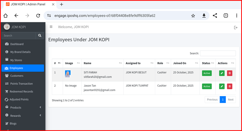 This guide explains the employee action buttons available in the iPOS Engage backend.