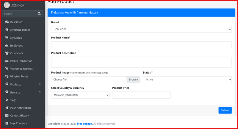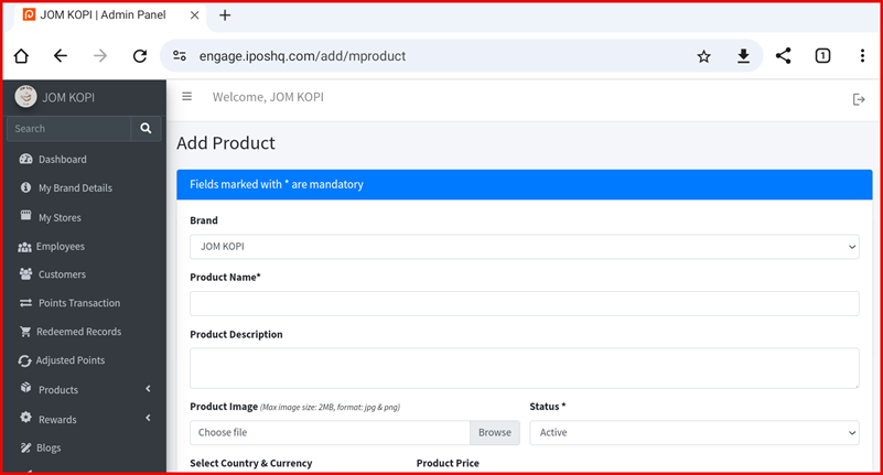 - Product Image — Upload an image (max 2MB, JPG or PNG format).