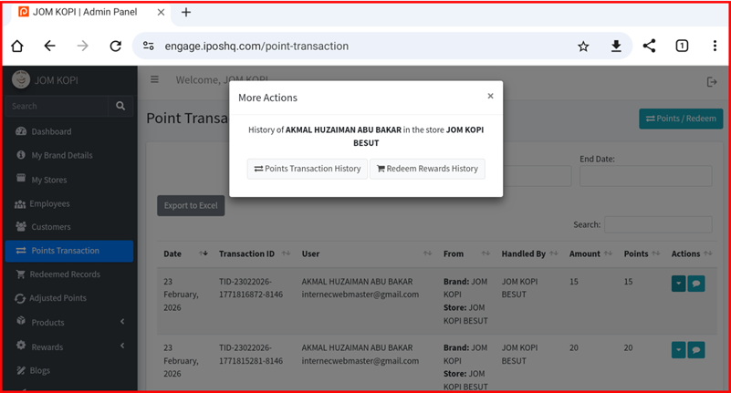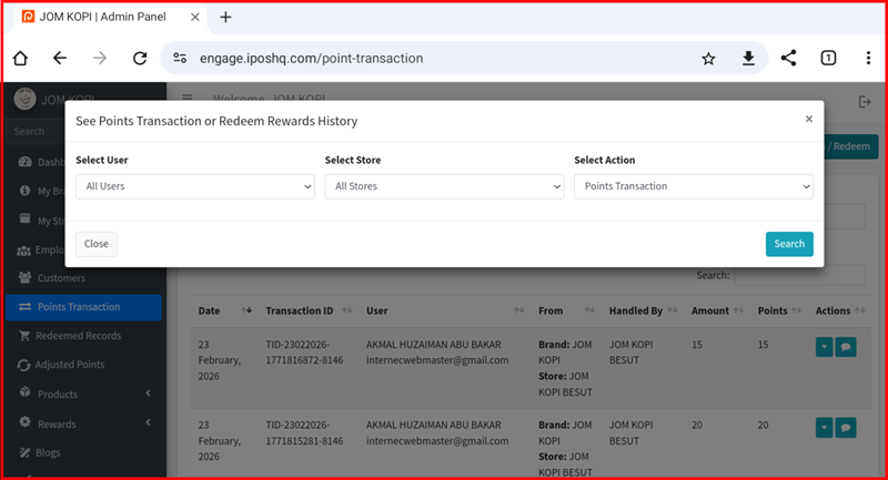 This guide explains how to manage point transaction records in the iPOS Engage backend.