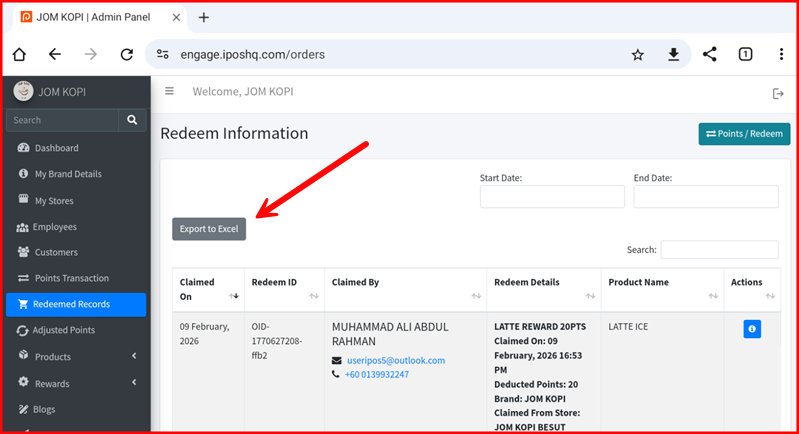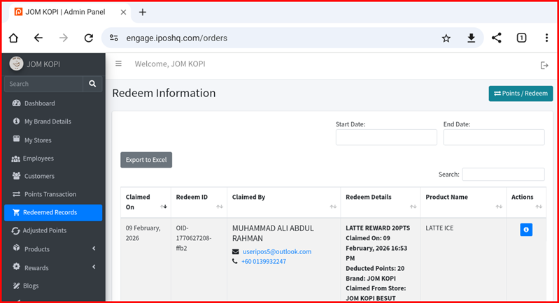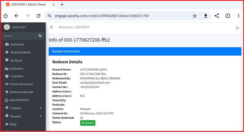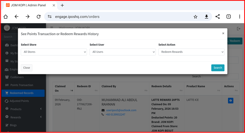 This guide explains how to manage reward redemption records in the iPOS Engage backend.