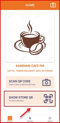 On the HOME screen, tap SHOW STORE QR to display your shop QR code. This QR code allows members to scan and join your shop.