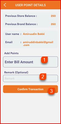 Enter the purchase amount on the screen. The system will automatically calculate the points to be awarded. Tap CONFIRM to complete the transaction.