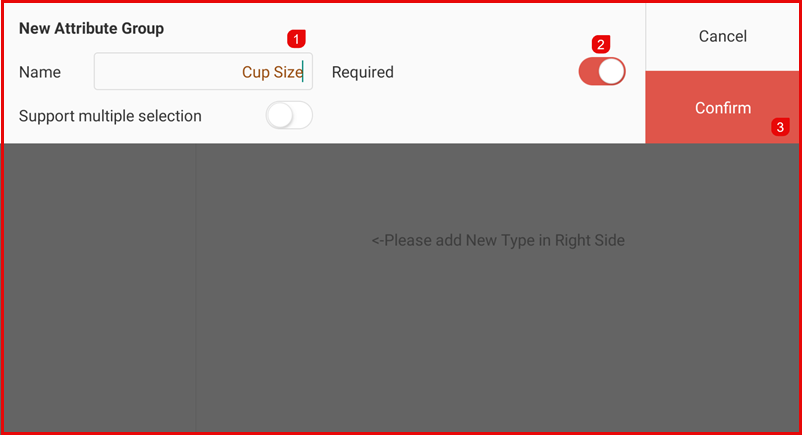 - Enter the Name (e.g., Cup Size, Sugar Level, Ice Level).