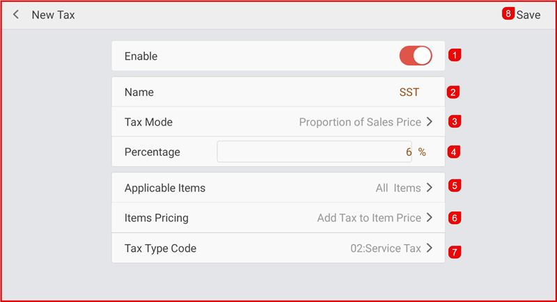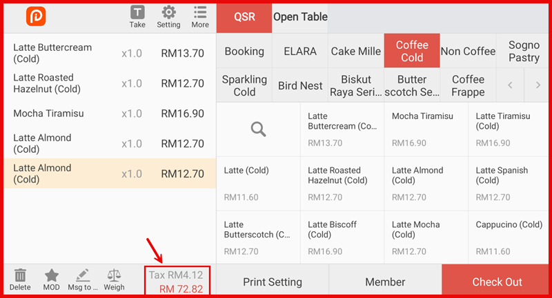 Sahkan bahawa cukai dikenakan dengan betul semasa transaksi jualan dan dipaparkan dengan tepat dalam ringkasan bil.