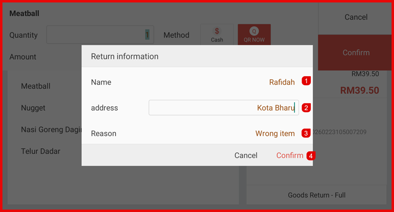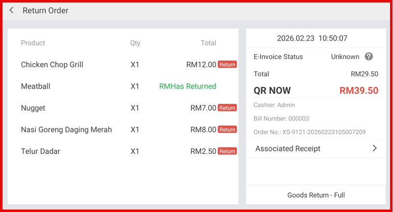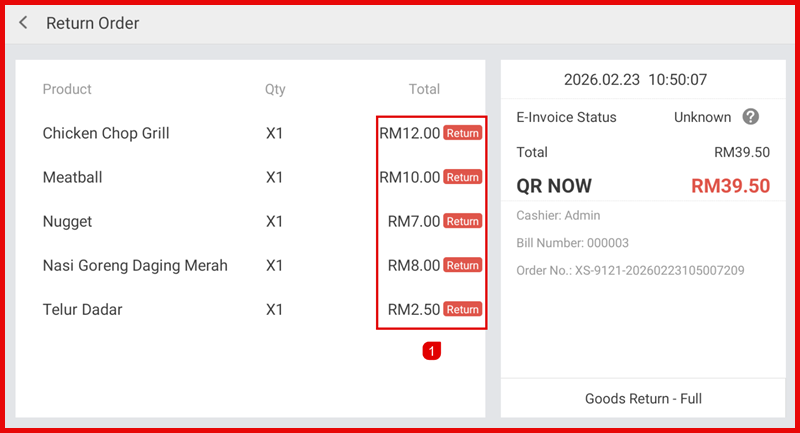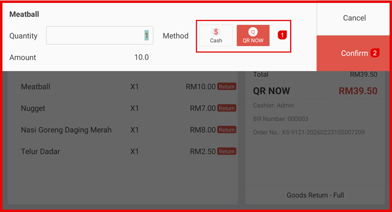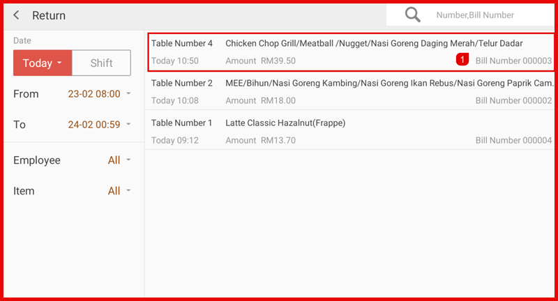 Process refunds for specific items within a bill without cancelling the entire transaction. This allows accurate adjustment of sales records and ensures proper refund tracking.