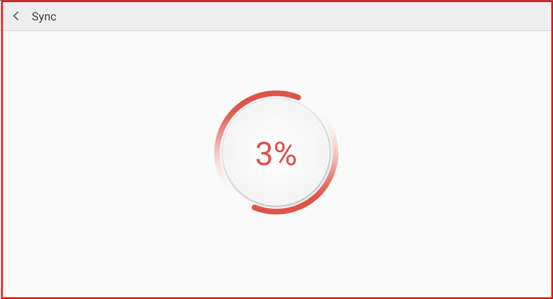 The Sync screen opens and begins syncing automatically, displaying a circular progress indicator with the current percentage. Wait for the sync to reach 100% to ensure all data has been successfully synchronised.