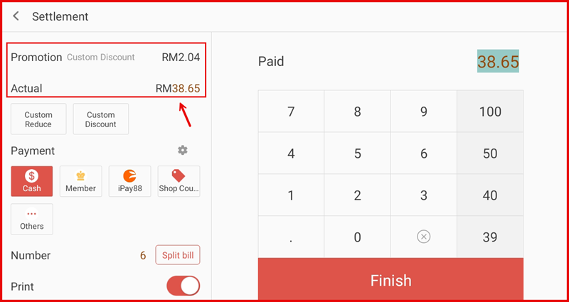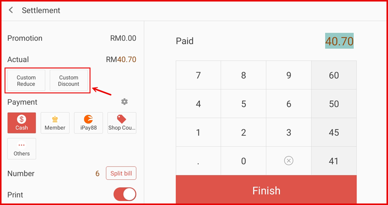 Go to Settings and tap Operation from the left sidebar. Then tap Custom Discount to access the configuration page. Set the following options: