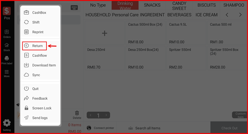 The Return feature in iPOS Retail allows you to process item returns from past transactions. You can return individual items or all items in an order, choose the refund method, and record the return reason.