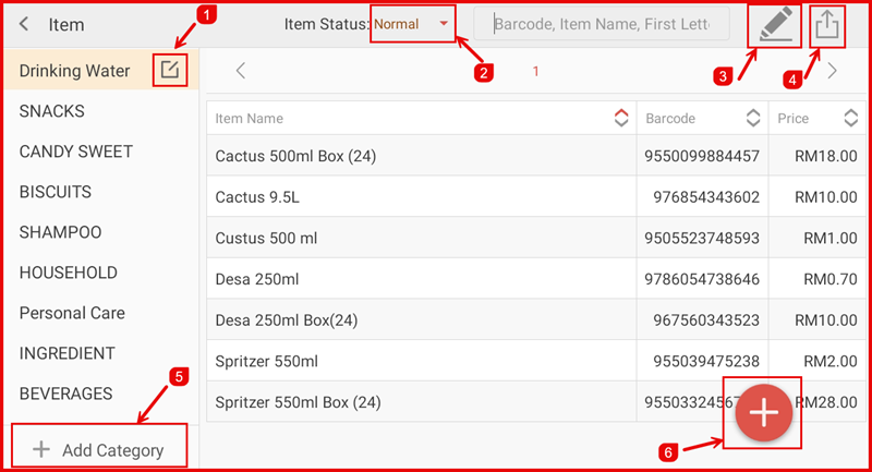 - Add Category — Create a new item category to organise your products