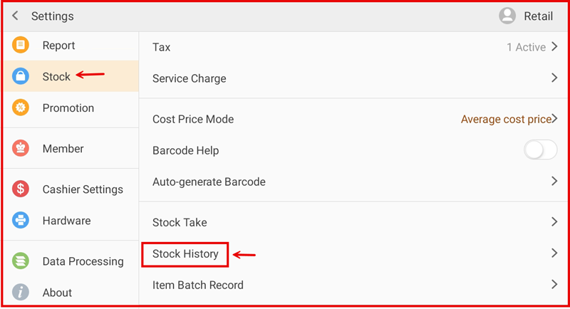This guide explains how to view and track stock movement history in the iPOS Retail Stock module. Stock History records all stock in and out movements for full traceability.